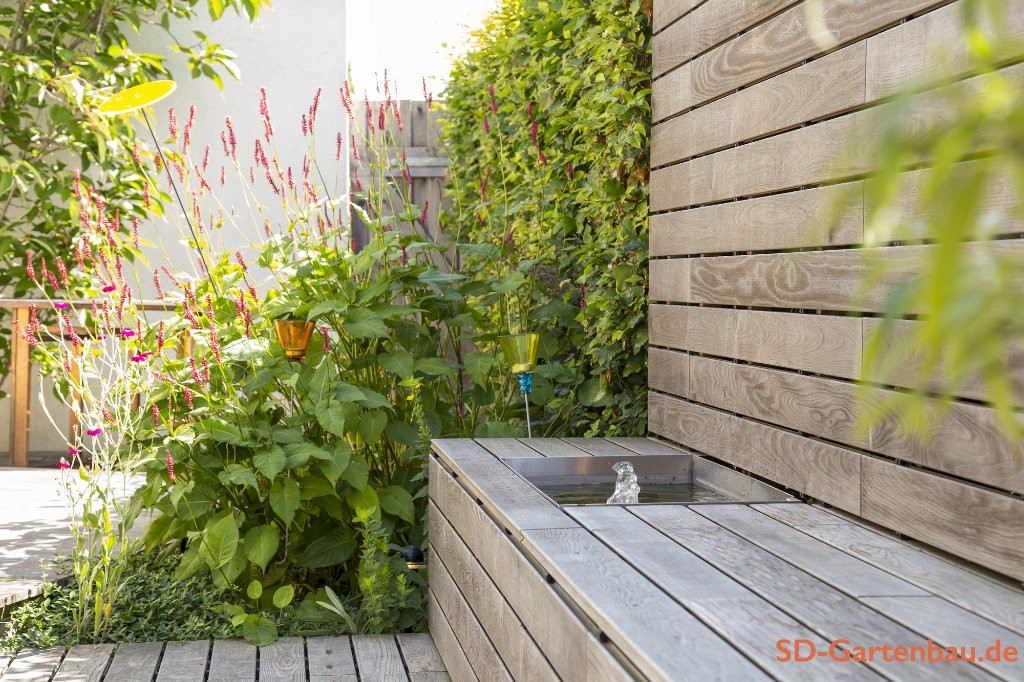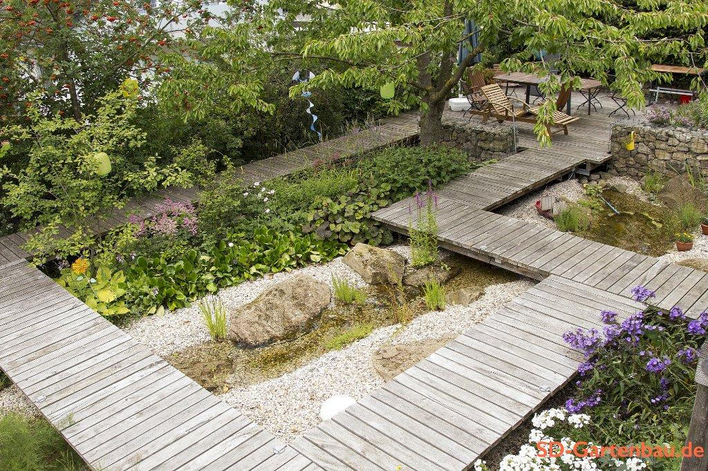 Mit Holz aus nachhaltiger Forstwirtschaft planen und bauen wir Zäune, Bänke, Stege, Treppen und vor allem Holzterrassen. Wir verwenden thermobehandelte Dielen, die durch eine Hochtemperaturbehandlung deutlich haltbarer und langlebiger sind als unbehandeltes Holz. Eine fachgerechte Gründung und eine kluge Materialkombination sind die Basis für eine lange Lebensdauer.