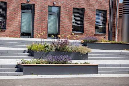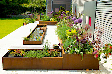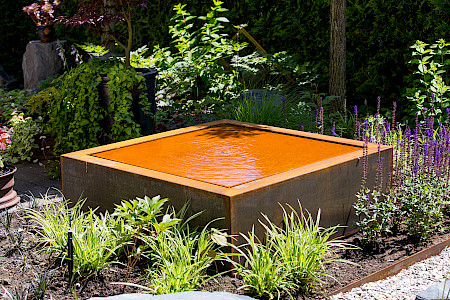 Ob als Sichtschutz, Einfassung, Wasserspiel, Hochbeet oder dekoratives Element. Die vielfältigen Einsatzgebiete von Metall im Garten sind unerschöpflich. In Kombination mit Glas oder Stein gestalten wir individuelle und maßgeschneiderte Elemente, die sich in die Gartenumgebung harmonisch einfügen.