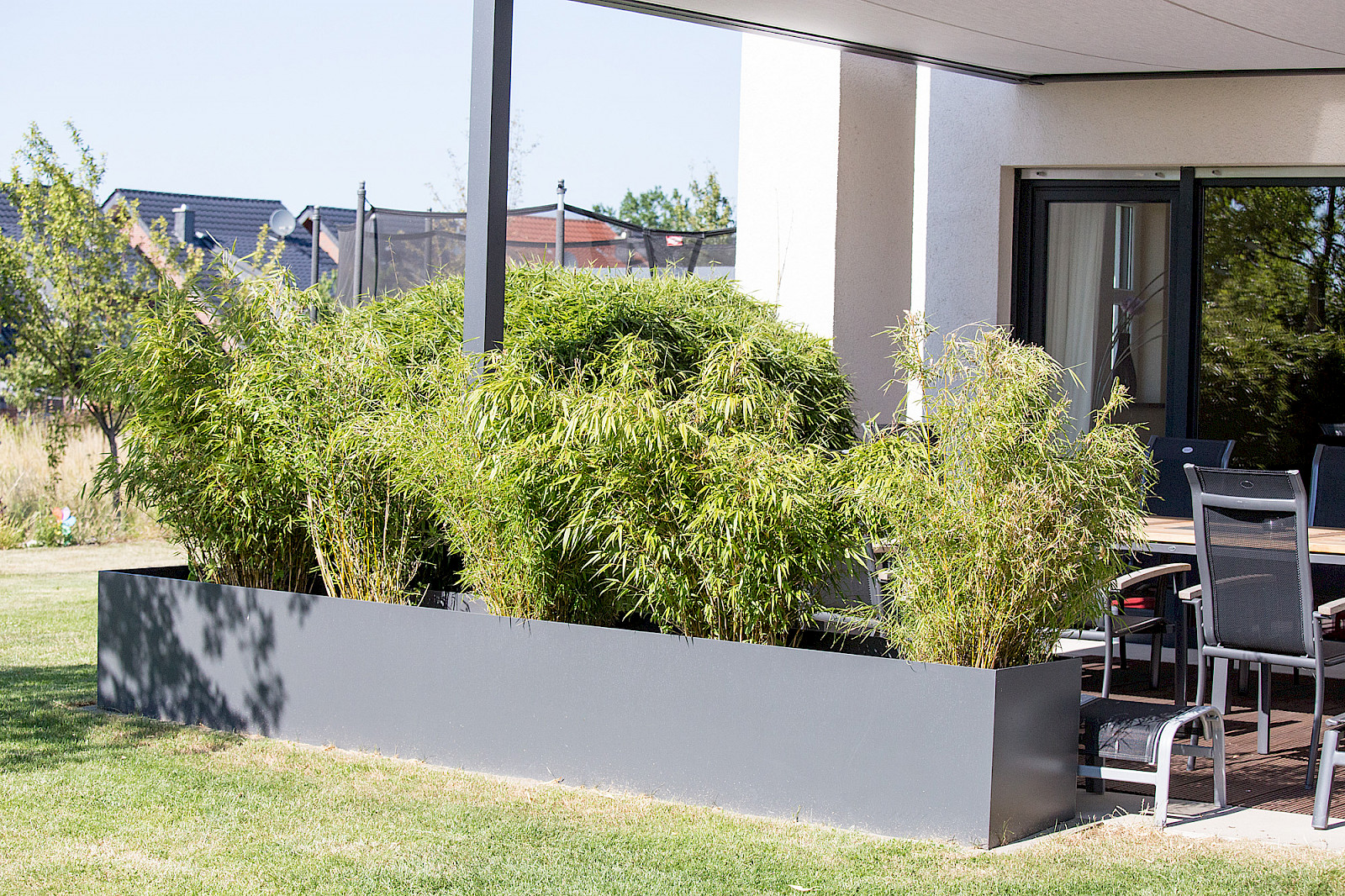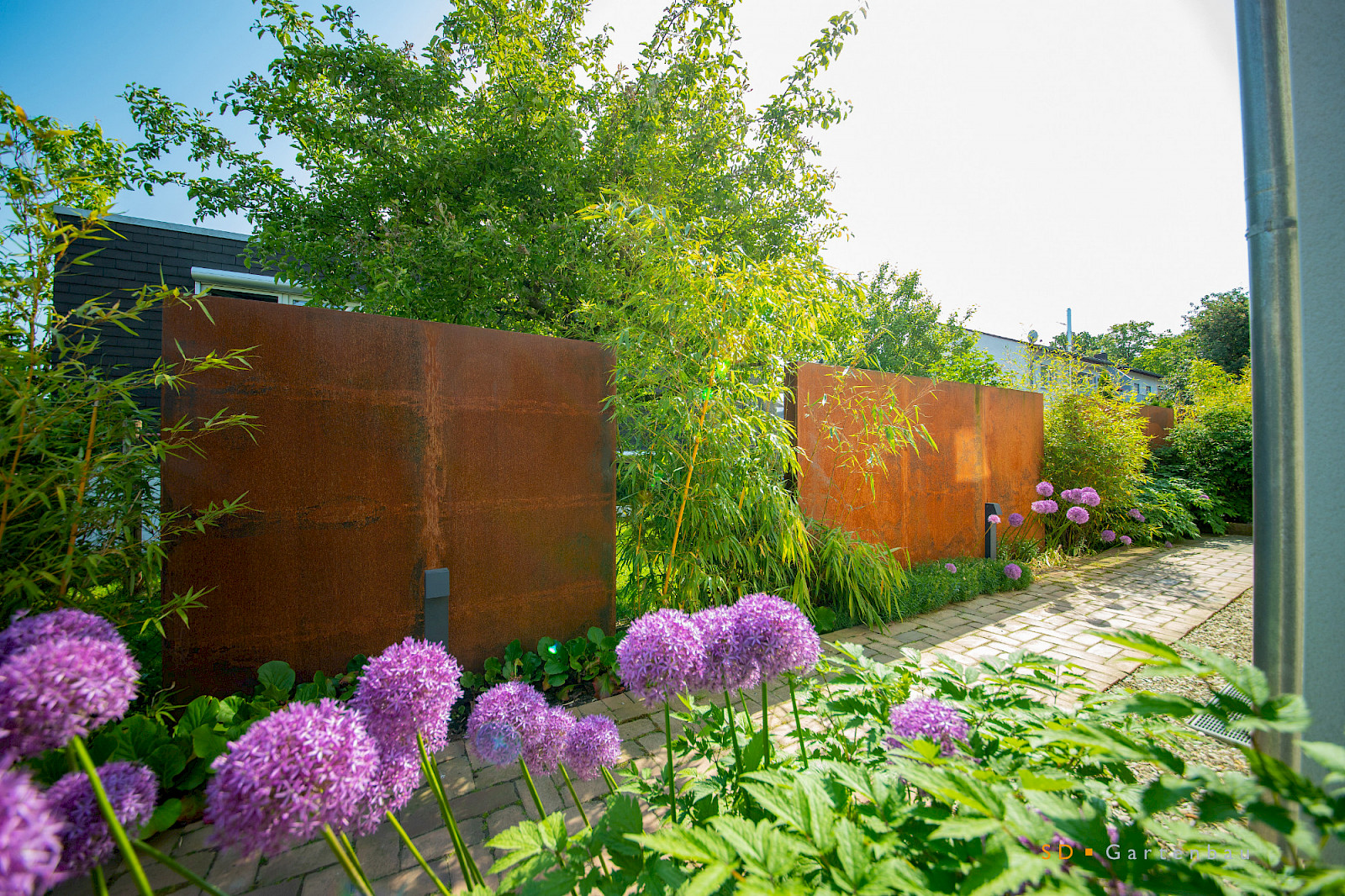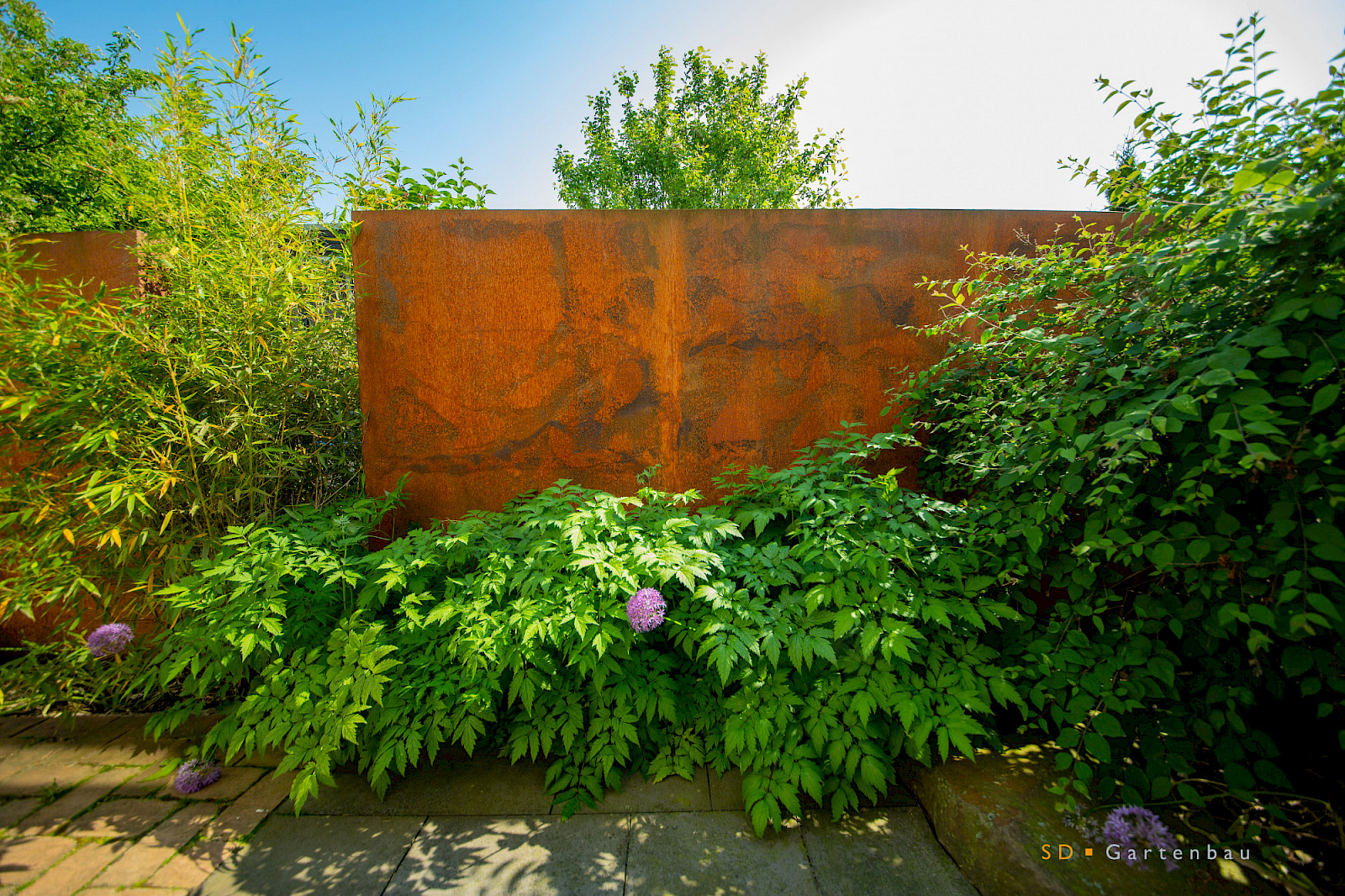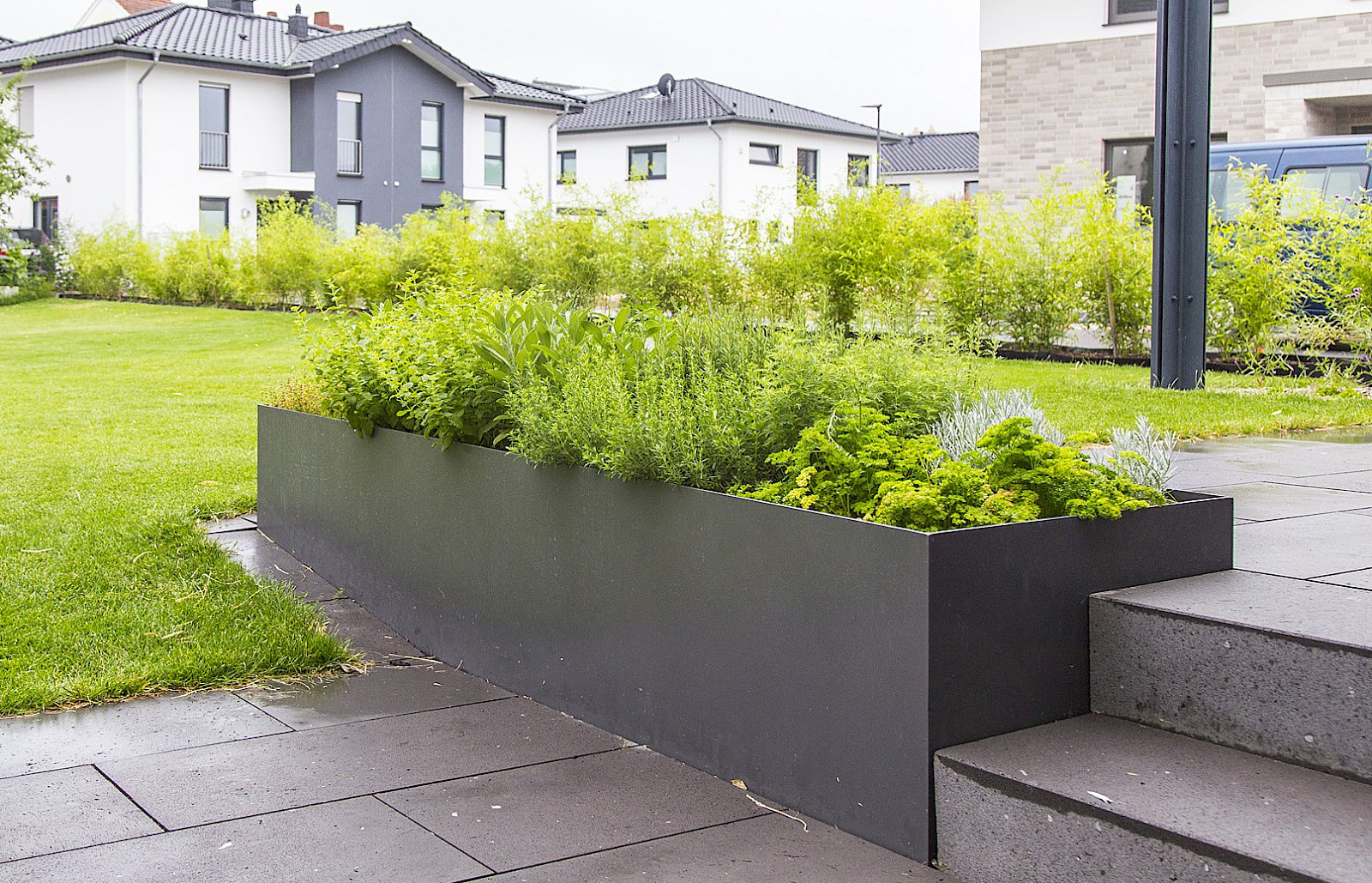 Ob als Sichtschutz, Einfassung, Wasserspiel, Hochbeet oder dekoratives Element. Die vielfältigen Einsatzgebiete von Metall im Garten sind unerschöpflich. In Kombination mit Glas oder Stein gestalten wir individuelle und maßgeschneiderte Elemente, die sich in die Gartenumgebung harmonisch einfügen.