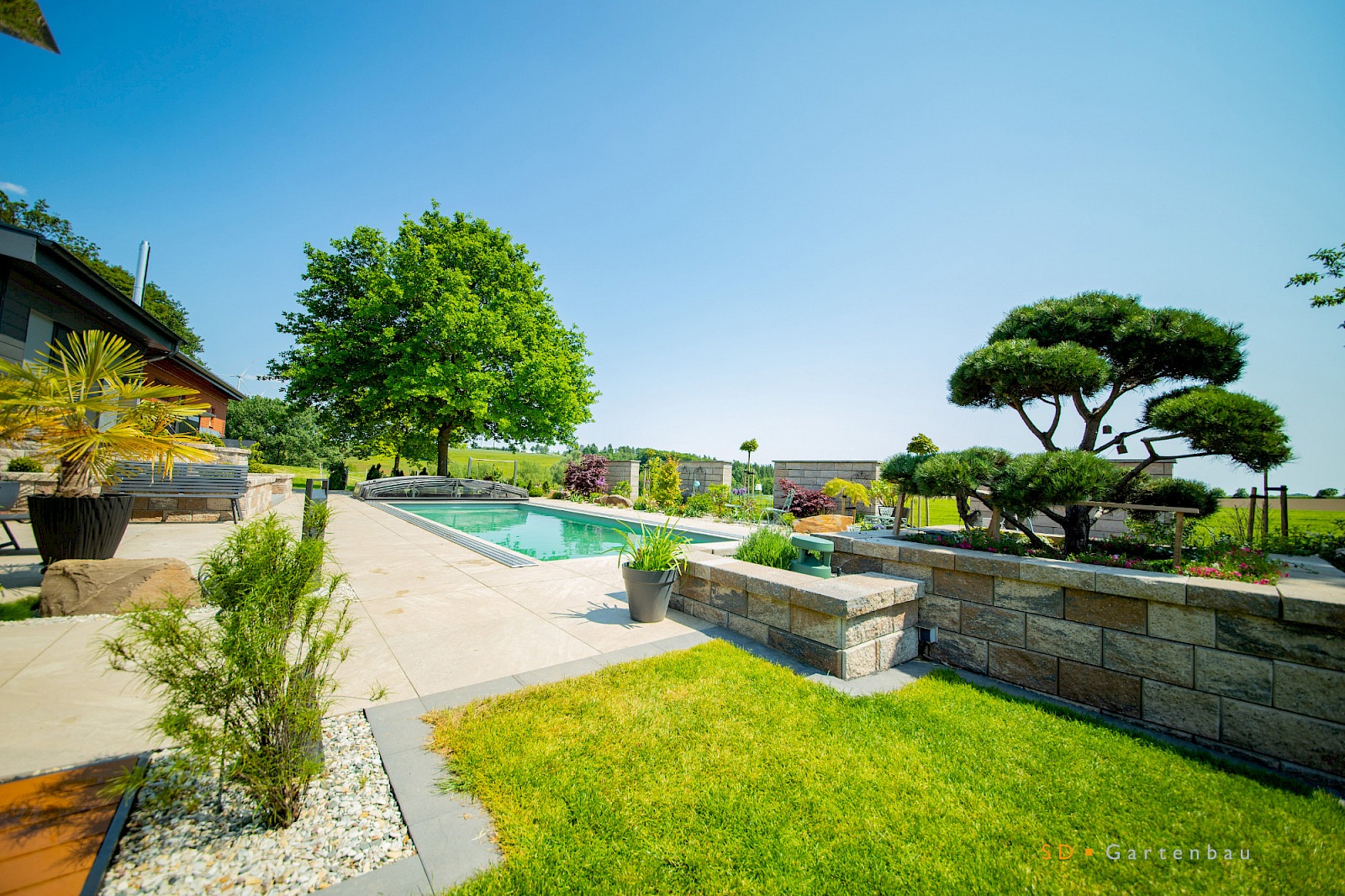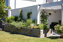 Mit Pflaster, Platten und Kies gestalten wir Terrassen, Einfahrten, Wege, Beete und Begrenzungen in geometrischer oder organischer Formgebung. Ein fachgerechter Aufbau und eine planvolle Wasserführung gewährleisten Langlebigkeit und trockene Wände. Auch um Höhenunterschiede in Ihrem Garten abzufangen und interessante Geländemodellierungen herzustellen eignen sich Steine in jeglicher Form und Farbe. So bauen wir Ihnen Mauern, Treppenanalgen und gestalten Hänge mit Natursteinfindlingen. Ein langlebiges Material, dass in der Verwendung kaum Grenzen kennt.